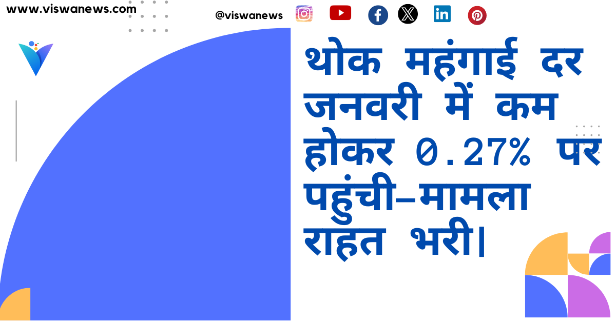 जनवरी 2024 में भारत में थोक महंगाई दर (WPI) 0.27% पर आ गई. यह दर दिसंबर 2023 के 0.73% से कम है. खाने-पीने के सामान की कीमतों में आई गिरावट की वजह से महंगाई दर कम हो रही है.