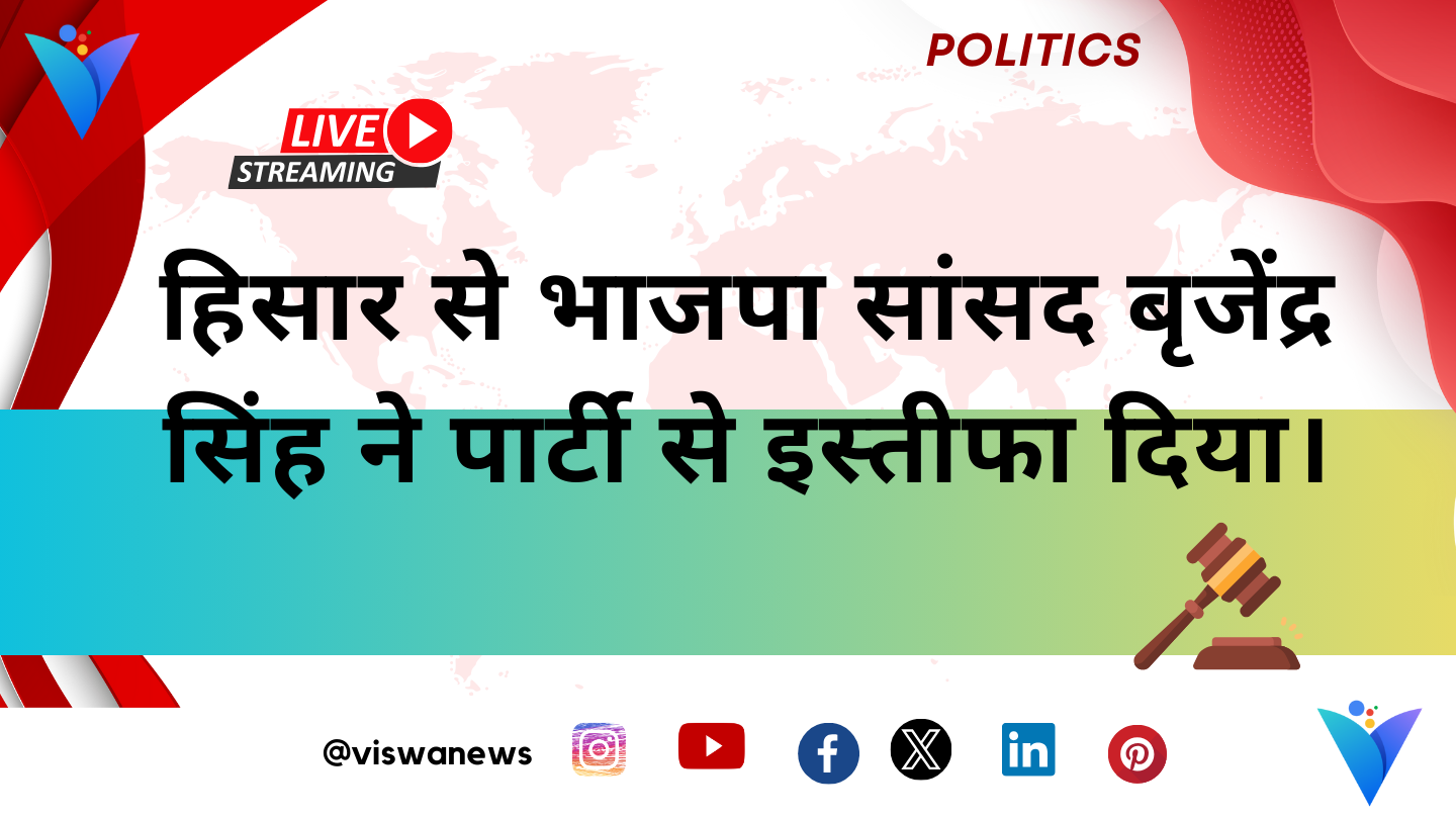 हिसार से भाजपा सांसद बृजेंद्र सिंह ने पार्टी से इस्तीफा...